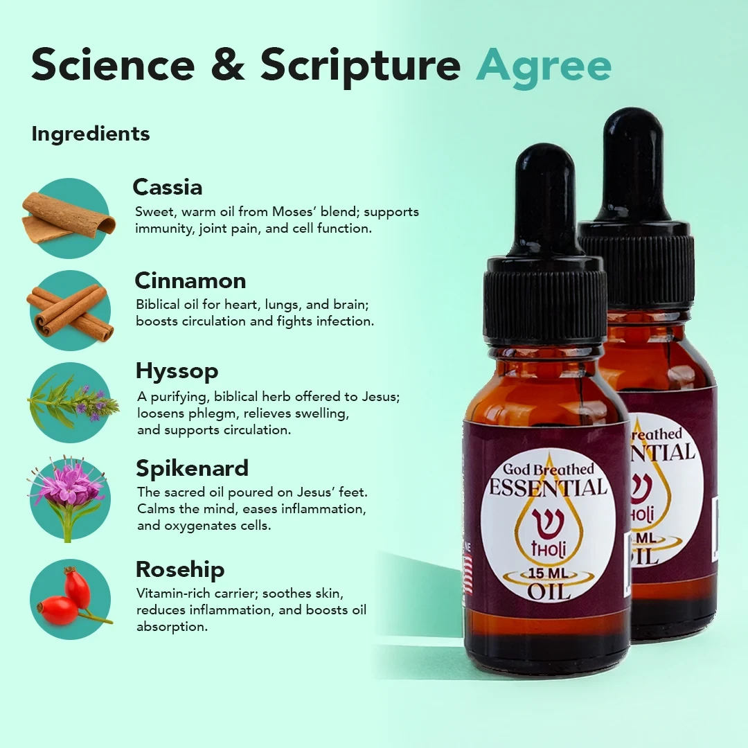 We recommend using our proprietary and God-breathed blend of Tholi essential oil made from ancient Biblical plant extracts - Spikenard, Hyssop, Cinnamon Bark and Cassia.